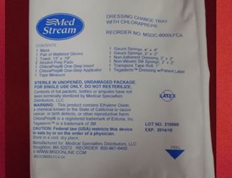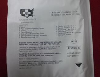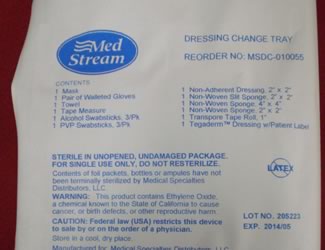 Dressings covering a central line or port must be changed at least every 7 days (or every 2 days if there is any gauze under the dressing.) We offer three types if kits for this purpose, which include all the supplies needed. Generally the supplies in the kits are also available on an individual basis should you need more.